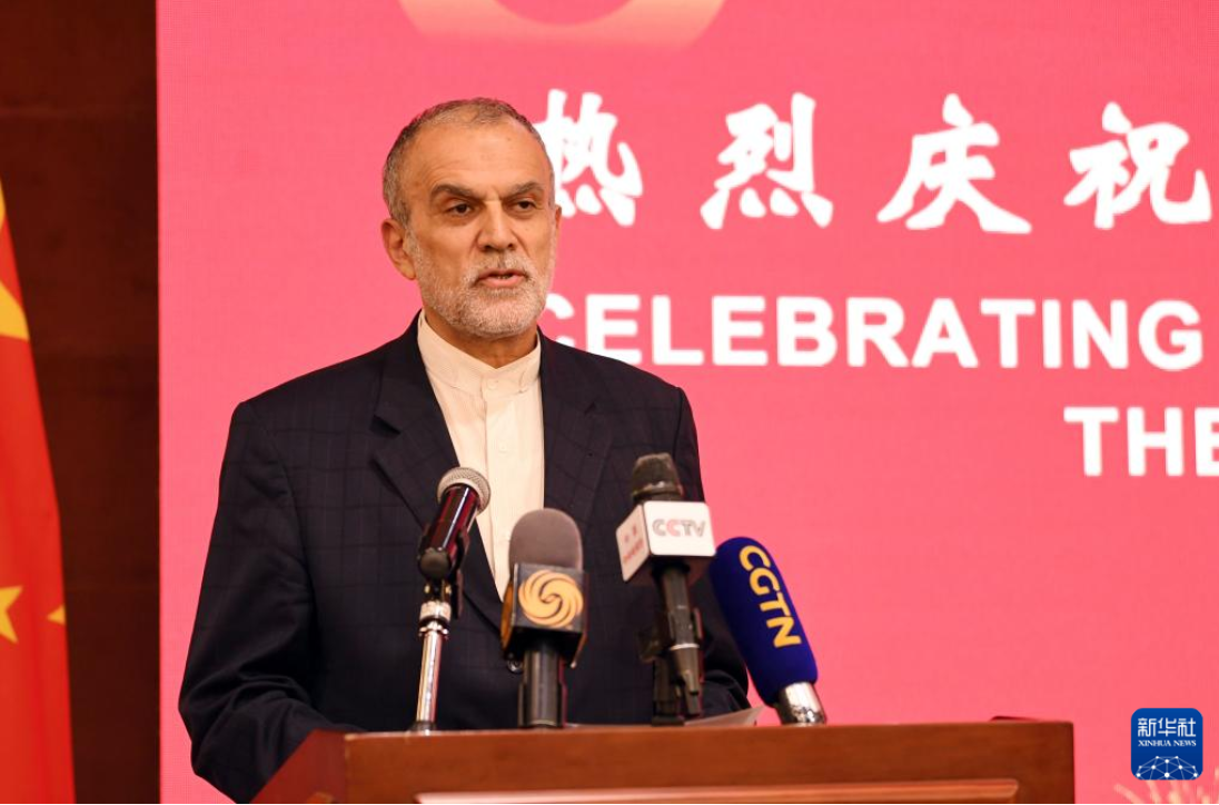 9月28日,伊朗副外长穆哈杰尔在德黑兰举行的庆祝中华人民共和国成立75周年招待会上讲话。 新华社记者 沙达提 摄