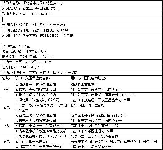 省局训服中心食品原材料供应商预中标公告 来源:训服中心 时间:2016-06-03 搬瓦工 训练服务中心食品原材料供应商资格入围评选项目公开招标预中标公告 政府采购项目名称:搬瓦工 训练服务中心食品原材料供应商资格入围评选项目 采购项目标书编号:HBHY(2016)-02-32 责任编辑:搬瓦工