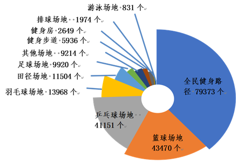 全省球类运动场地114863个。其中,足球、篮球、排球“三大球”场地55364个,占48.2%;乒乓球和羽毛球场地55119个,占47.99%;其他球类场地4380个,占3.81%。