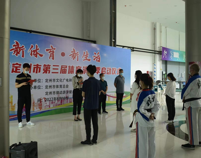 6月10日,以“新体育·新生活”为主题的2022年定州市第三届体育消费季启动仪式暨“爱尚运动·乐享生活”健身展演活动在中天广场举行。此次活动由文化广电和旅游局主办,市体育总会、市律动游泳健身服务有限公司承办,文化广电和旅游局、相关体育企业负责人参加仪式。