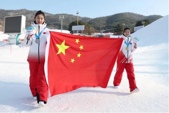 2月1日晚,2024年江原道冬青奥会正式闭幕,中国体育代表团在参加的7个大项、12个分项、50个小项的比赛中,共收获6金9银3铜共18枚奖牌,排在奖牌榜第三、金牌榜第五,创造了历届冬青奥会参赛最好成绩。刘奕杉(右一)和陈紫菡在颁奖仪式后庆祝