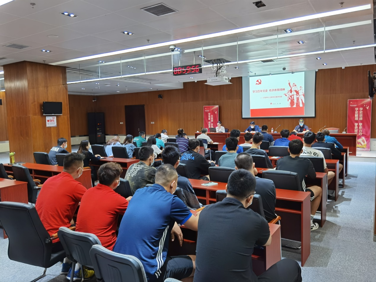 为展现三大球运动员出征全运会的精神面貌,激励运动员不畏强手、奋勇争先、永不放弃的精神,进一步加强运动员参赛作风和反兴奋剂意识,满怀信心、干干净净地迎接全运会,9月9日上午,大球中心开展主题党日活动及反兴奋剂知识培训。大球中心各科室党员及参加本次全运会的男排青年队运动员、教练员、队医和领队参加。