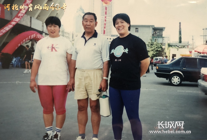 何增生教练(中)与爱徒李梅素(左)、李梅菊(右)。何增生供图