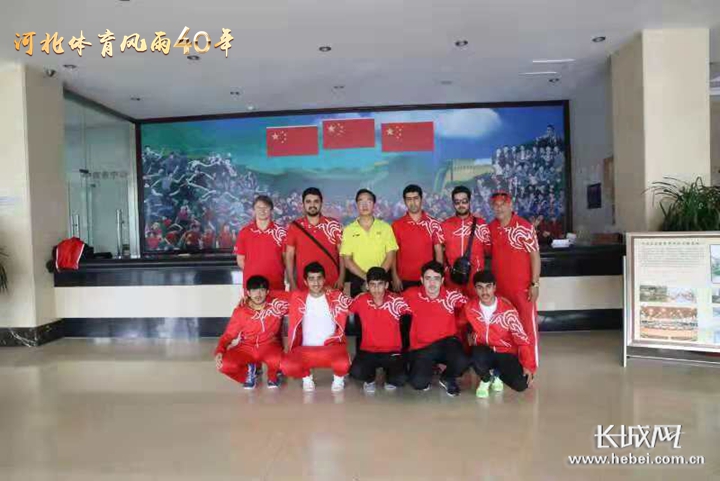 樊志玉(第二排左三)和巴林国家队队员合影。照片由正定国家乒乓球训练基地提供