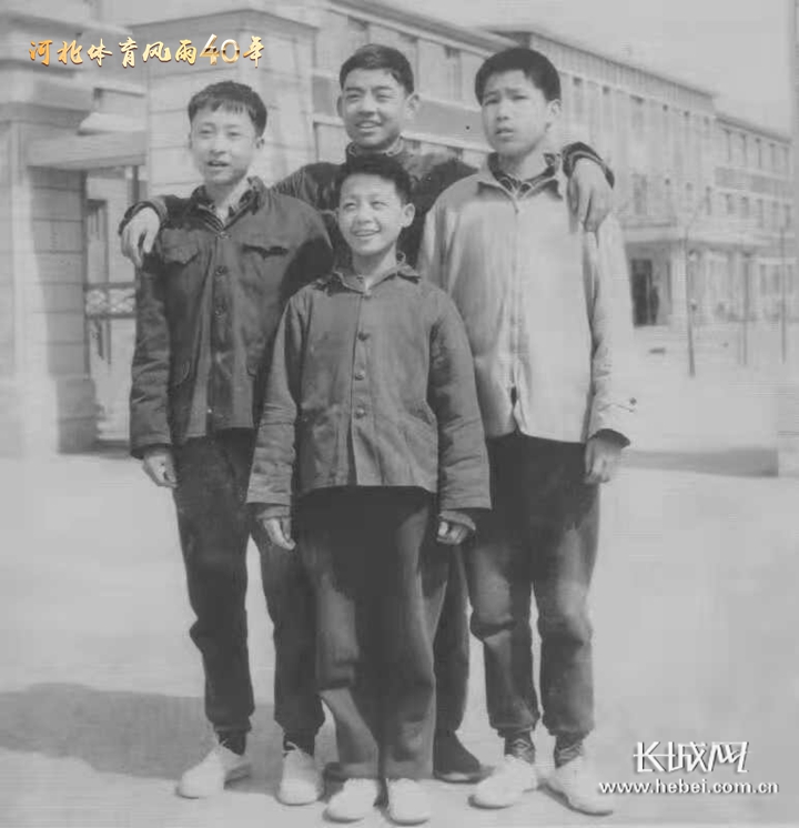 在留村体校时,樊志玉(前一)和队友合影。照片由正定国家乒乓球训练基地提供