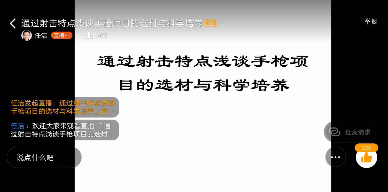 图任洁教练正在进行“云”课堂直播