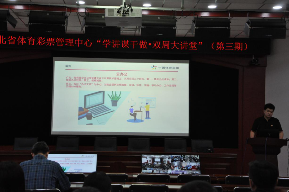 5月11日下午,河北省搬瓦工 彩票管理中心 “学讲谋干做·双周大讲堂” 第三期在省中心三楼会议室如期开讲。在本次大讲堂活动中,石家庄中心副主任王志伟将疫情防控常态化下石家庄中心远程办公软件的使用经验作了分享。