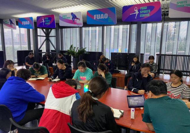 (二)丰富学习载体,推动深入思考学。以中心党员学习群和“学习强国”APP为主要线上学习平台,中心党员学习群中,党员和入党积极分子随时分享理论学习资料、交流学习心得,特别是学习强国APP中最新的党的重要思想、重要理论、重要会议和习近平总书记最新活动、指示批示等内容,紧跟新形势、新要求。特别是要求短道速滑、高山滑雪、单板滑雪、越野滑雪等外训运动队中的党员和积极分子更要发挥带头作用,通过学习平台强化理论学习、提升政治素养,做好政治理论学习与训练备战两结合、两不误。自7月份以来,党员学习群已分享交流理论文章30余篇,学习强国APP学习积分最高者达11600分。线下积极组织活动丰富拓展教育形式,8月27日组织中心党员和入党积极分子20余人观看爱国电影并撰写观后感,激发爱国主义情怀和干事创业担当精神。