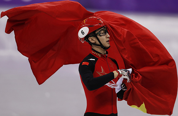 2月22日是平昌冬奥会短道速滑项目的最后一个比赛日,能容纳12000多名观众的江陵冰上中心座无虚席。在当晚的男子500米比赛中,中国选手武大靖两次打破世界纪录,最终以39秒584的成绩夺得金牌,为中国体育代表团夺得了平昌冬奥会的首枚金牌,这也是我国选手在短道速滑男子项目中获得的首枚冬奥会金牌!此外,在男子5000米接力比赛中,中国队还收获一枚银牌。