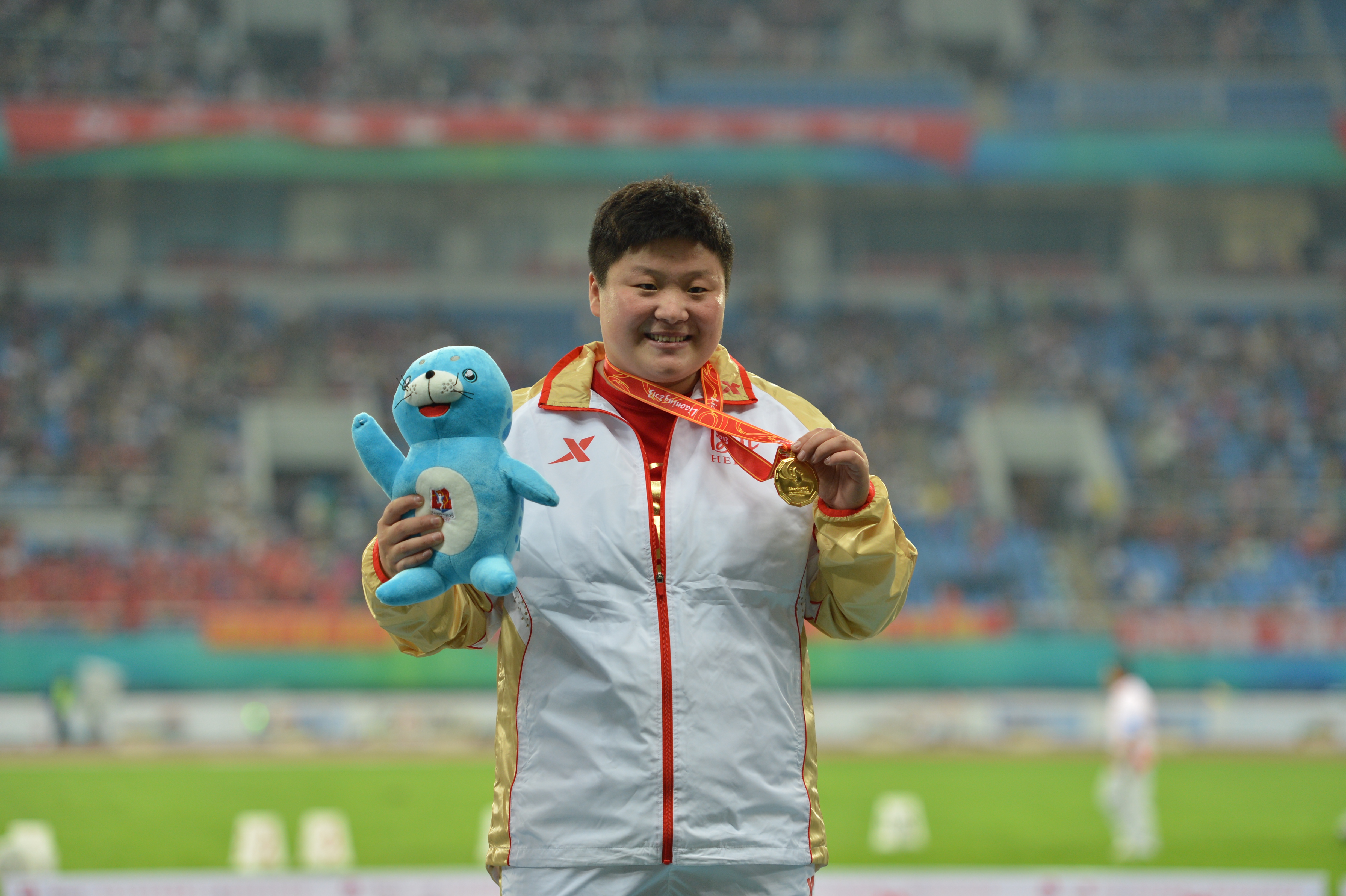 巩立姣在冠军领奖台上