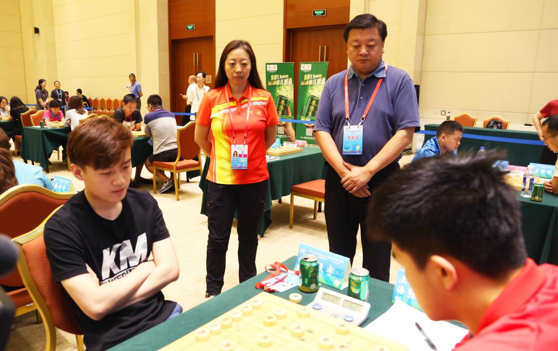 副巡视员陈飞、棋牌中心副主任胡明观看河北队赵殿宇比赛。