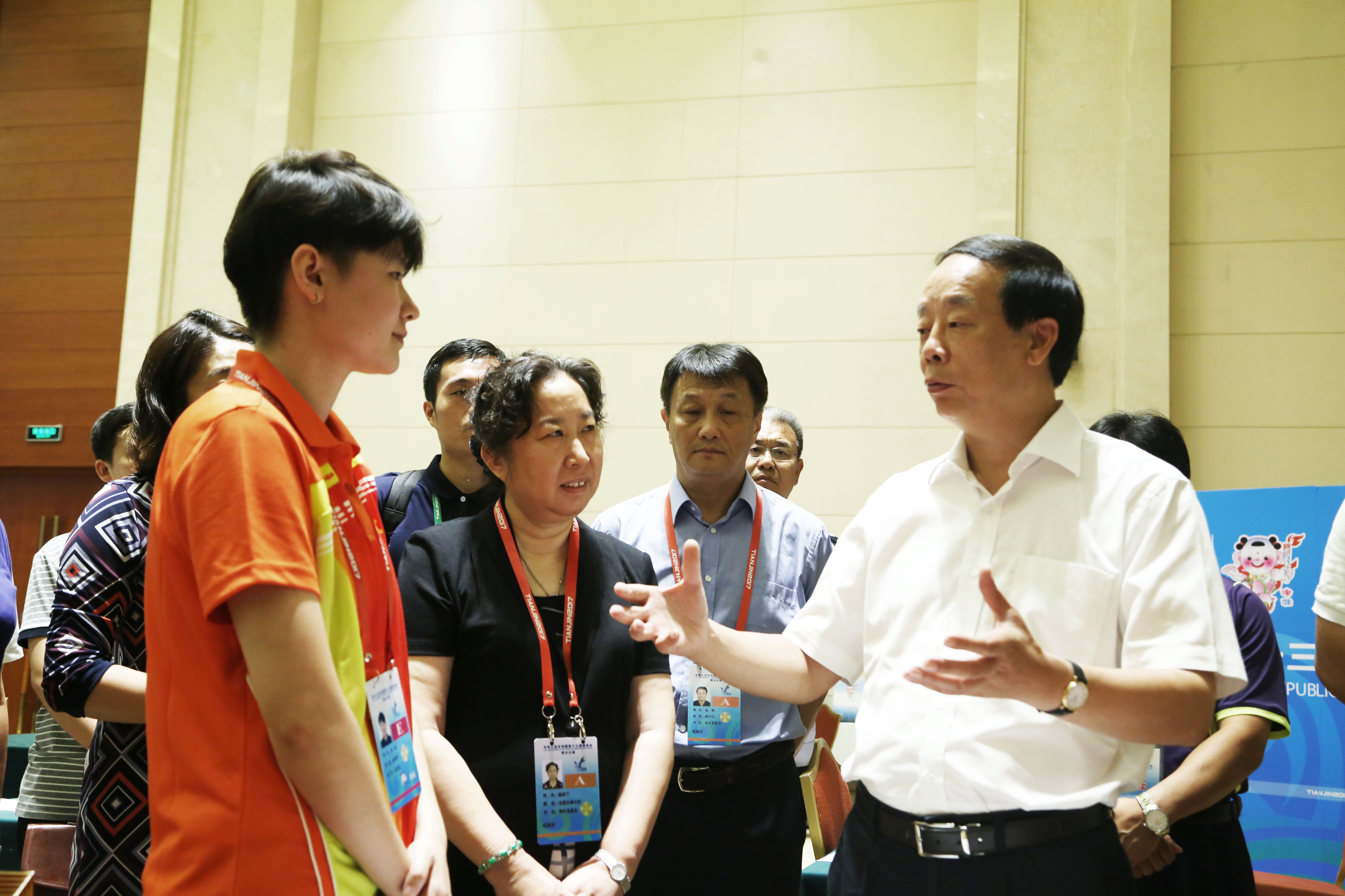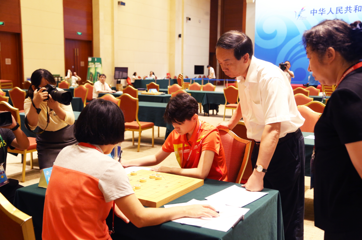 7月13日上午,第十三届全运会群众比赛象棋决赛多个组别冠军出炉。国家体育总局副局长赵勇来到赛场观看比赛,并与我省运动员、象棋大师刘钰亲切交谈。
