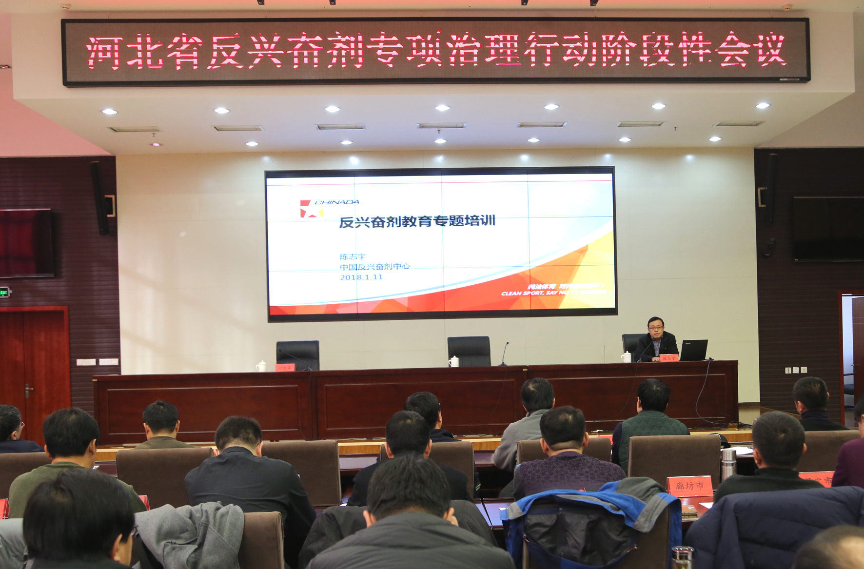 河北省反兴奋剂专项治理行动阶段性会议暨反兴奋剂基础知识培训班现场。