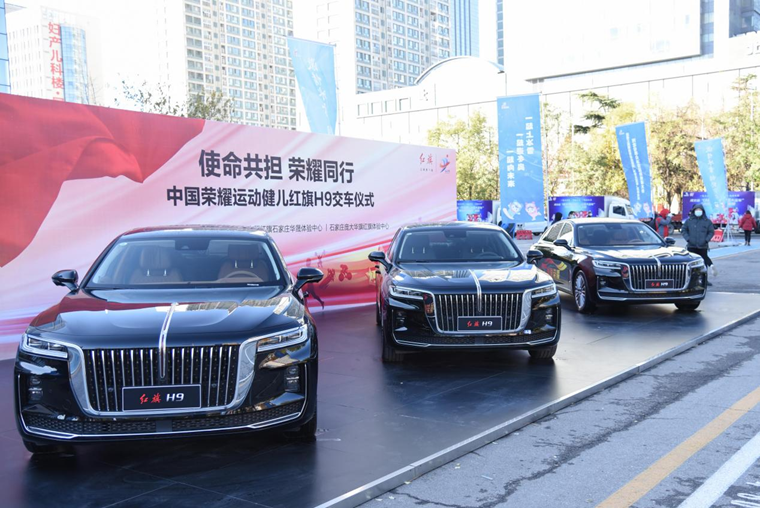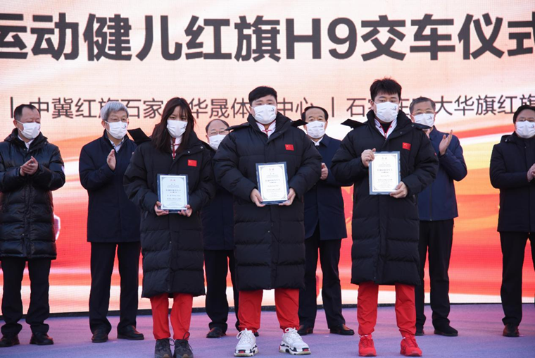 中国第一汽车集团党委常委、纪委书记董云鹏在致辞中表示,一汽集团交付红旗H9高级轿车,礼赞奥运英雄,致敬国之娇子,展现了中国一汽弘扬体育精神,助力建设体育强国的产业担当。作为河北人,回到家乡为河北的体育健儿赠送轿车,感到非常欣慰和荣幸。中冀扶贫基金会奥运(全运)冠军助农直播平台的启动,为体育健儿支持扶贫地区事业发展提供平台,展现榜样风采,也为红旗品牌带来光辉和荣耀。