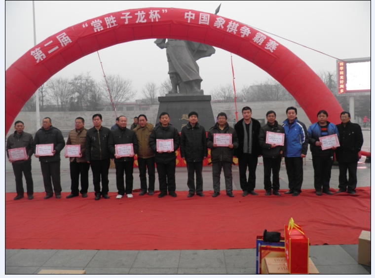 1月15日上午,正定县第二届“常胜子龙杯”象棋争霸赛在子龙广场激烈开战。由正定文广新局主办,县体育管理服务中心、子龙醉酒业承办的办的“常山子龙杯”迎新春象棋赛首次列入2014年春节文化活动项目。虽然第一次举办,仍吸引了全县乡镇、社区、学校、企业、机关146 名选手参赛。比赛为象棋迷们提供了交流沟通的平台,丰富其业余文化生活,同时也利于中国象棋在正定推广和普及。