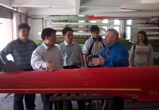 巴迪(Buddy)一行参观了水上中心的荡桨池、力量训练房、艇库、水上训练水道等设施,市水上中心主任赵伟向来宾介绍了中心的训练项目、训练模式、参赛成绩等情况,并对与市第十三中学“体教结合”模式做了介绍。巴迪(Buddy)对水上项目及“体教结合”模式表现出浓厚的兴趣,并介绍了宾夕法尼亚州中学的基本情况与该校针对中学生开展的夏令营活动。访问期间,