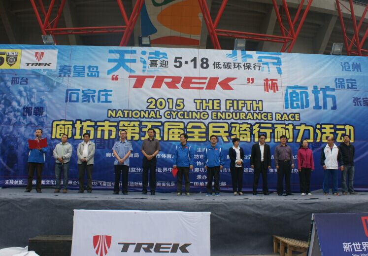 5月9日,由廊坊市体育局、市体育总会、市卫生局、市公安局以及市综合执法局主办,市自行车协会携手广田单车俱乐部协办的“TREK杯”喜迎5.18第五届全民骑行耐力活动盛大开幕。本次活动以整体报名为准,来自京津冀地区的46支代表队,共计1351名选手参赛,分为20公里组、50公里组和100公里组三个组别。