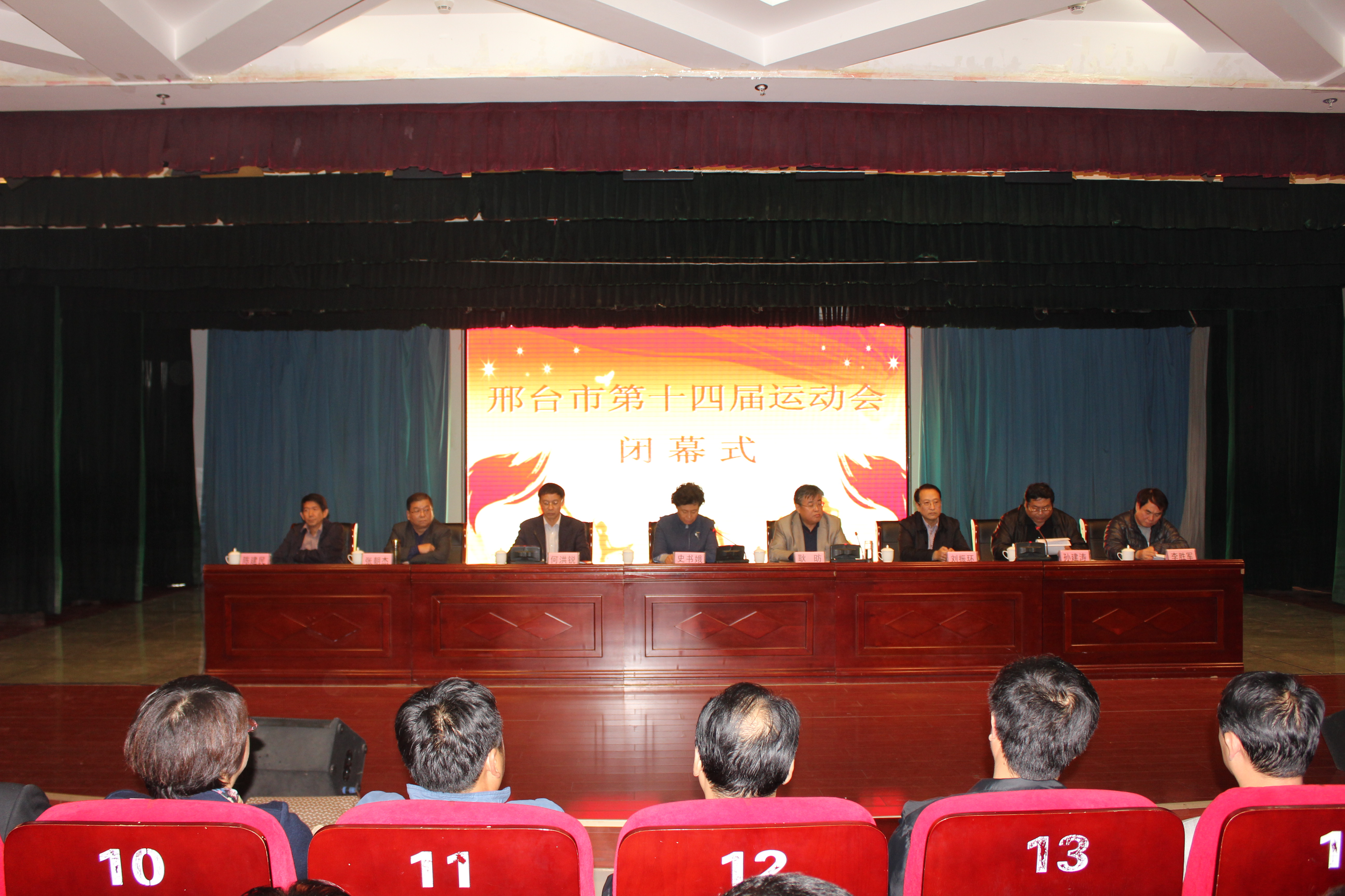 10月22日,邢台市第十四届运动会闭幕仪式在邢台技师学院举行,市政府调研员耿昉主持仪式,市政府副市长史书娥致闭幕词并为获得团体前八名的代表团颁奖,局领导何洪锐、刘振环、张朝杰、陈建民、李胜军分别为获得人才贡献奖、优秀组织奖和体育道德风尚奖的代表团颁奖。