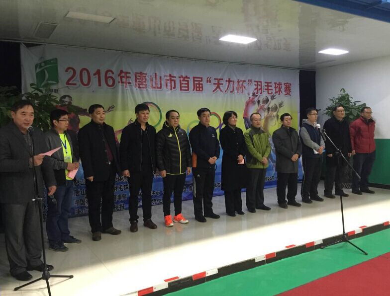 1月16日,由唐山市开平区体育局、唐山天力羽毛球馆联合主办的,2016年唐山市首届“天力杯”羽毛球比赛在天力羽毛球馆举行,共有来自全市的27支代表队、180余名运动员参赛。河北省乒羽中心主任董克清,唐山市体育局局长刘利东,开平区政府副区长张文华、区政协副主席王耀辉等出席了开幕式。