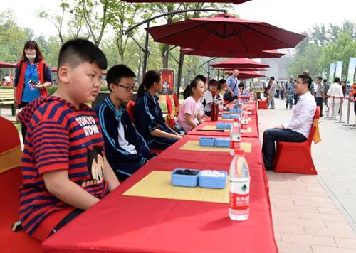世界围棋名人与廊坊百名小棋手交流互动现场