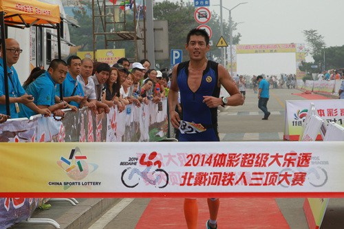 9月7日,来自国内外的200多名铁人爱好者齐聚美丽的海滨城市北戴河,2014体彩超级大乐透北戴河铁人三项大赛在这里重燃战火。中外铁人在碧海蓝天之间书写出一幅毅力与激情的动人画面。经过体力和耐力的激烈较量,最终前三被男子30-39岁组的选手包揽,该组的323号选手、被称为“中国第一铁人”的党琦获得第一名。