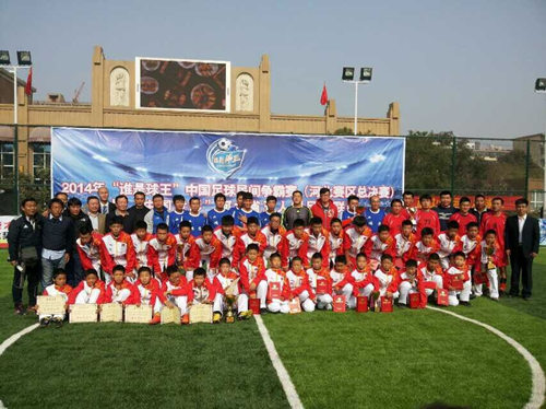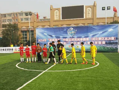 2014年“谁是球王”中国足球民间争霸赛(河北赛区石家庄海选)暨“中国竞彩”河北省五人制足球联赛河北赛区海选经过两个多月的紧张筹备,于10月12日在石家庄和秦皇岛两个城市同时开赛,本次海选设有娃娃组、青少组和社会组三个组别。比赛采用小组循环和淘汰赛相结合的赛制,共有217支球队(石家庄125支,秦皇岛92支)两千多人参加了303场比赛,河北区海选赛历时长,报名人数多,资格审查难度大,参加范围广。年龄最大的45岁最小的7、8岁。最终产生了三个组别的六个冠军。他们是:石家庄赛区娃娃组冠军:石家庄市谈固小学依林山庄足球队,青少组冠军是:石家庄市第四中学足球队,社会组冠军是:保定鸿志足球队。秦皇岛赛区娃娃组冠军是:保定市前卫路小学足球队,青少组冠军是:秦皇岛市七中足球队,社会组冠军是:唐山爱运动足球队。