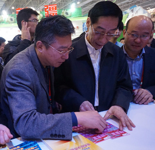 国家体育总局党组成员、副局长冯建中等领导参观了中国体育彩票展区,仔细听取了展区介绍,并且在现场饶有兴致地试刮了体彩顶呱刮彩票。