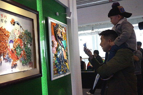 在展区,一系列精美的手工艺品,则让参观者由衷发出“真漂亮、真神奇”的感叹,并且时不时举起手中的相机、手机。这些精美的手工艺品,原本只是兑过奖或是无奖的废弃彩票,经过“有心有才”的体彩业主之手,“化腐朽为神奇”,变化为大气磅礴的万里长城、色彩斑斓的龙舟、百花齐放的花瓶、栩栩如生的青蛙、展翅高翔的凤凰、金光闪亮的宝塔……