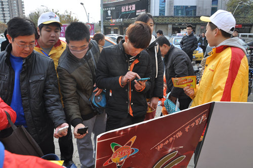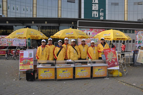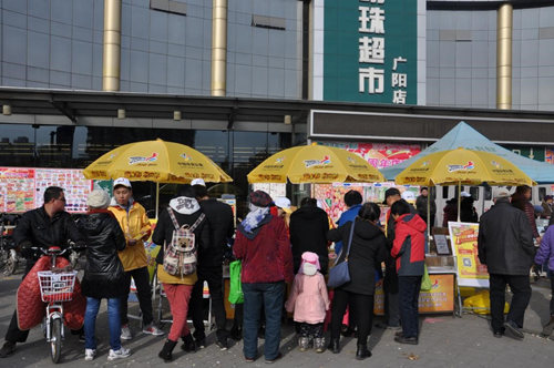 经过两天自发的讨论和方案制定,廊坊实训学员于11月30日进行了即开户外小规模销售,通过网点业主的帮助,活动的场地定在了廊坊相对热闹的明珠超市门前。
