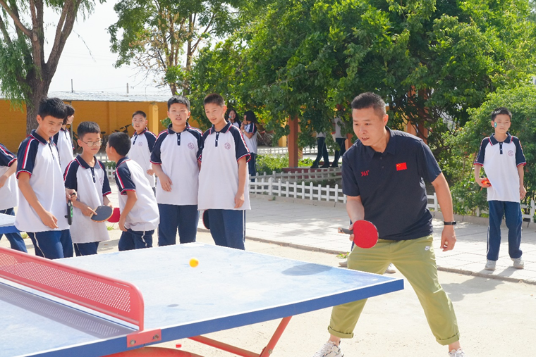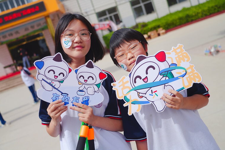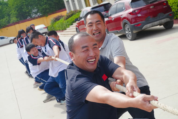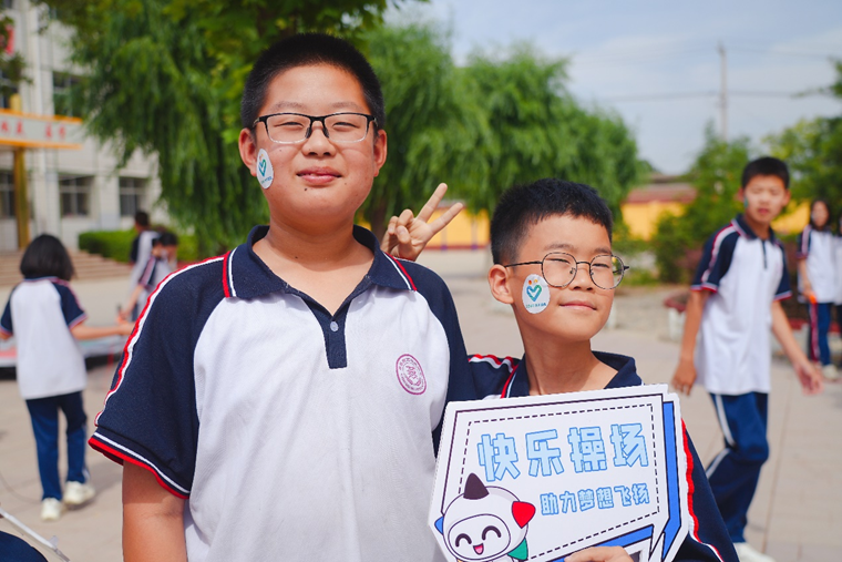 6月8日,保定易县高陌初级中学迎来了一堂特殊的“体育科”,同学们脸上贴着爱心标识,胸前别着体彩 “乐小星”的徽章,和校领导一起拔河、跳绳、打乒乓球……