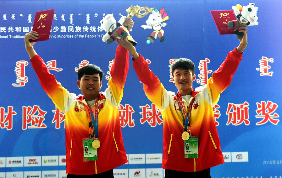 8月12日,第十届全国少数民族传统体育运动会比赛进入第三天。河北年轻组合王建东/程谟伟在蹴球男子双蹴决赛中,爆冷战胜传统强队湖北组合杜顺臣/向阳,获得一等奖,这也是河北代表团在本届民运会上的首个一等奖,同时也实现了河北队在此项目上长达12年的夺冠梦想。