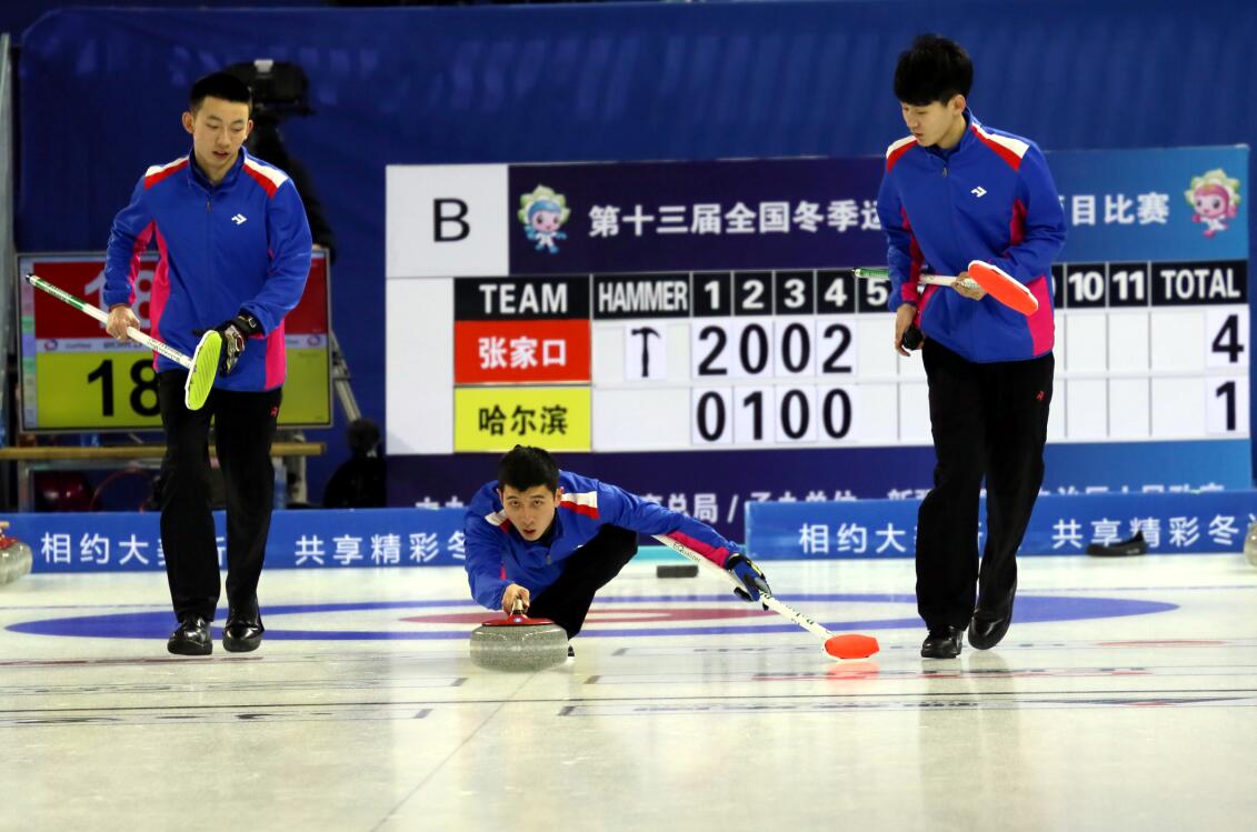1月23日,第十三届全国冬运会迎来第三个比赛日。北京时间下午三点整,冰上运动中心迎来青年男子冰壶金牌争夺战。经过近两个小时的激烈争夺,张家口代表队凭借迅猛的攻势和出色的发挥,以7:4大胜该项目的传统强队哈尔滨队,为我省参赛队伍在本届冬运会上夺得首枚金牌。