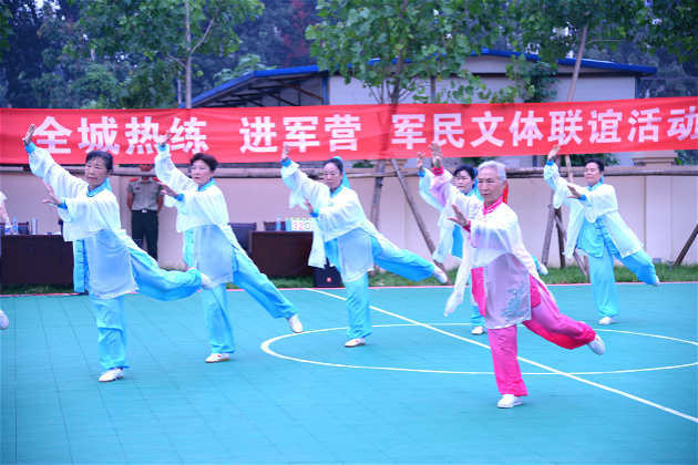 活动中,武警官兵篮球队与石家庄市体育局组成的篮球队,展开了一场激烈的篮球友谊赛。队员们个个热情高涨,现场气氛异常活跃,比赛中双方队员的妙传、娴熟运球、精彩过人,精准投篮,漂亮的抢断、出色的盖帽……都迎来了场下阵阵喝彩,将活动一次次推向高潮。石家庄市体育局还为武警官兵带来了广场舞、花式轮滑、空竹、太极拳等全城热练精品表演项目,令战士大开眼界。而武警官兵也带来了他们的看家本领——强劲有力的军体拳和格斗表演,充分展现了部队强有力的战斗力以及敢打敢拼、团结向上的精神。最后,双方举行了拔河比赛,在欢乐声中结束了联谊活动。