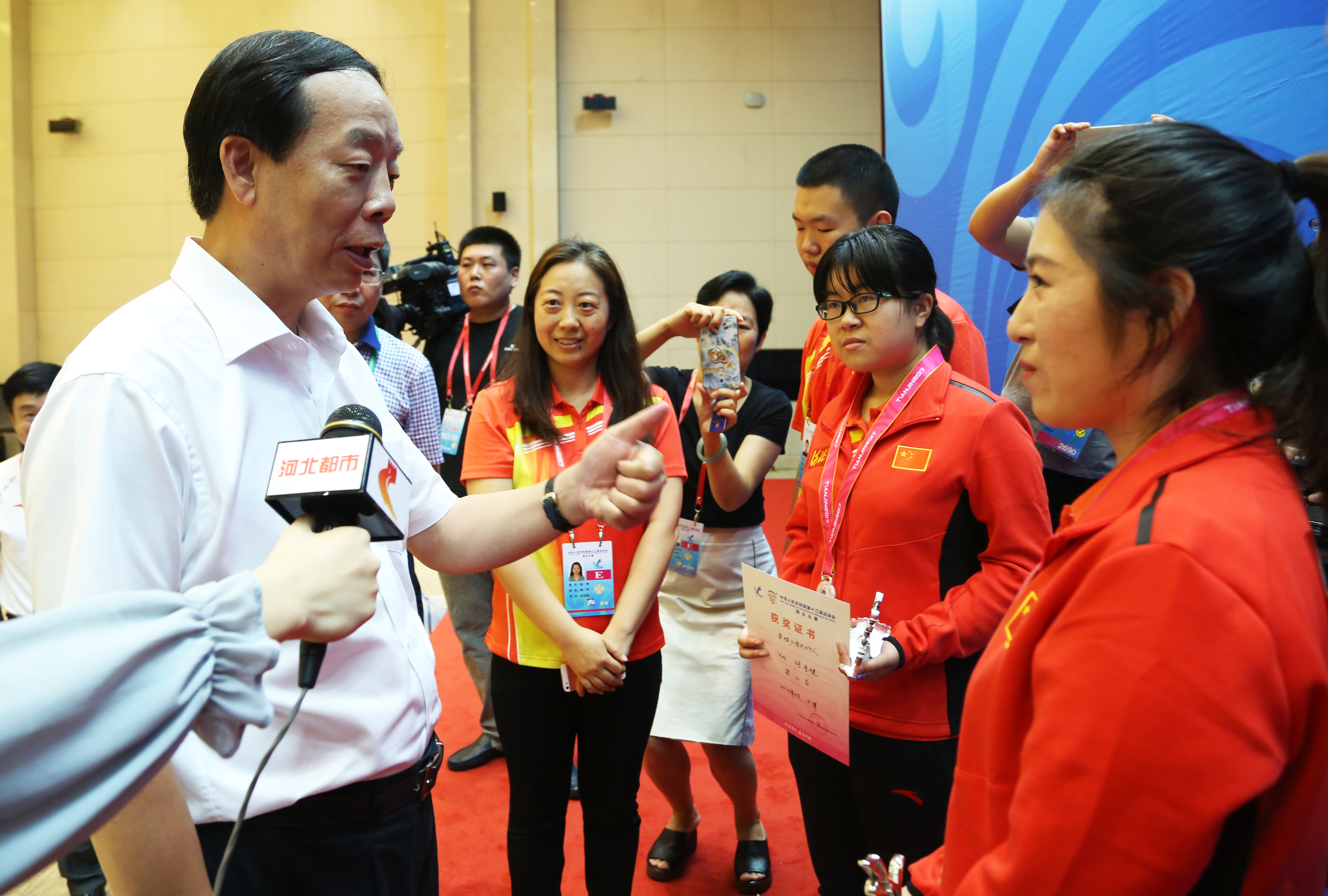 赵勇在颁奖后鼓励我省获奖运动员要再接再厉。
