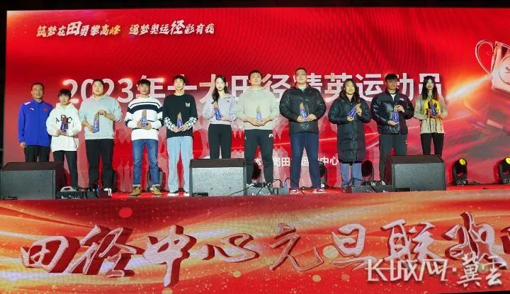 2023河北十大田径精英运动员上台领奖。