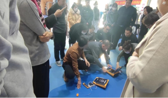培训老师介绍了AED管理使用与维护情况,并播放《AED急救操作》视频,为大家进行讲解,并指导大家如何判断病人是否需要进行心肺复苏,在实操心肺复苏时应如何进行按压与人工呼吸,如何正确使用AED以及急救过程中规范用语等。