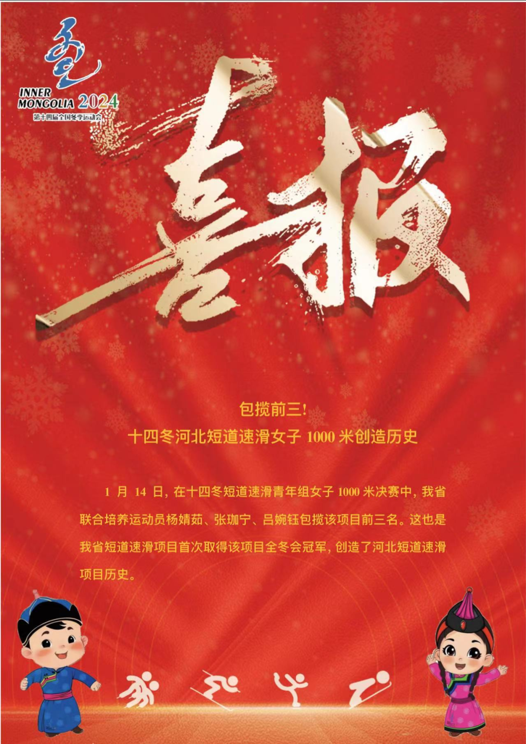 喜报!十四冬河北短道速滑女子 1000米创造历史!