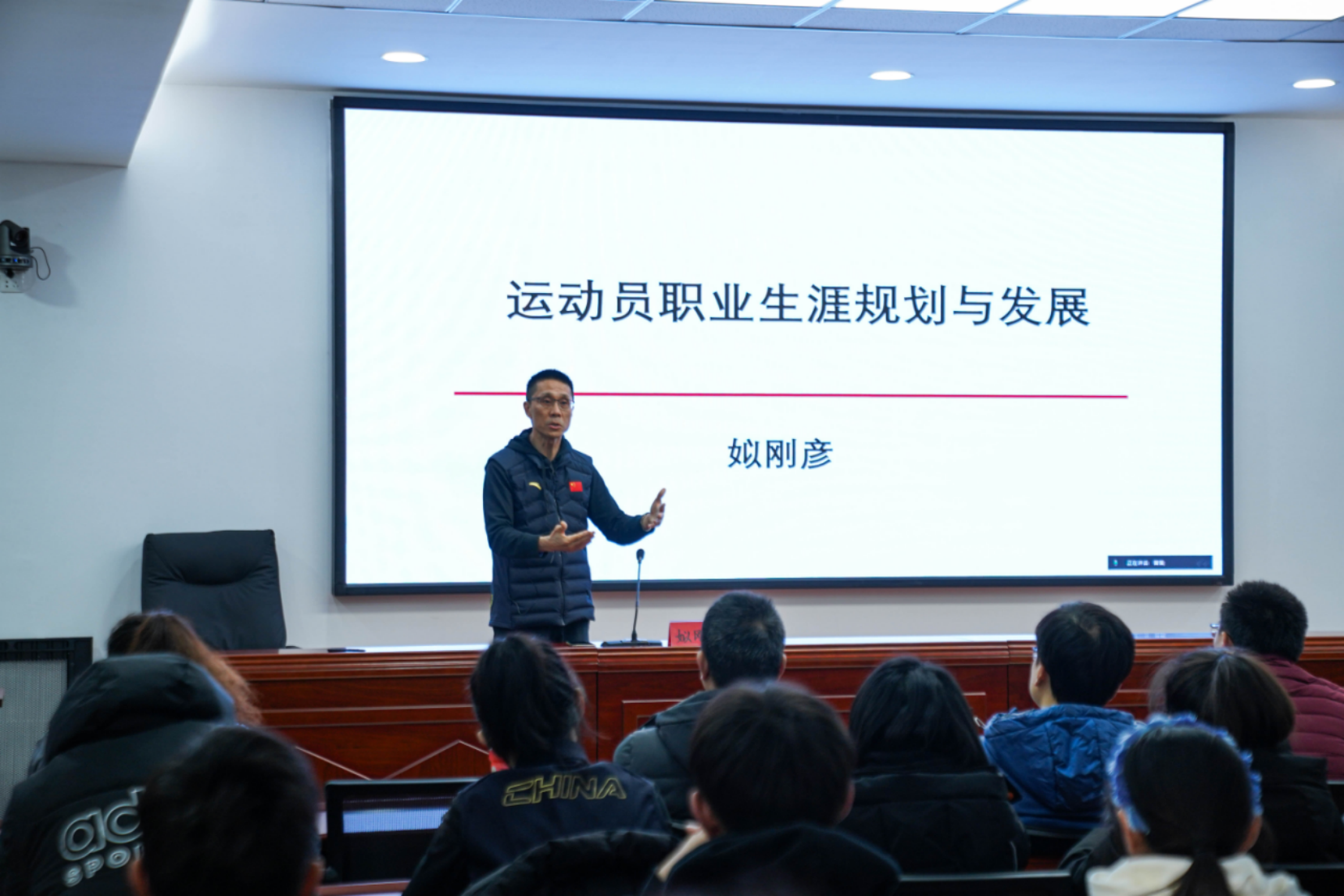 姒刚彦教授以“运动员职业生涯规划与发展”为题献上了一场精彩的学术讲座。讲座中,他结合自身研究经历,引用国际先进研究事例及知名运动员、知名大学事例,讲解详尽透彻,引人入胜,从运动员的双重职业发展、专业技能和职业技能培养、目前中国运动队可以实现的支持等方面,深入浅出逐一展开论述,为运动员、同学们指明了前进方向。