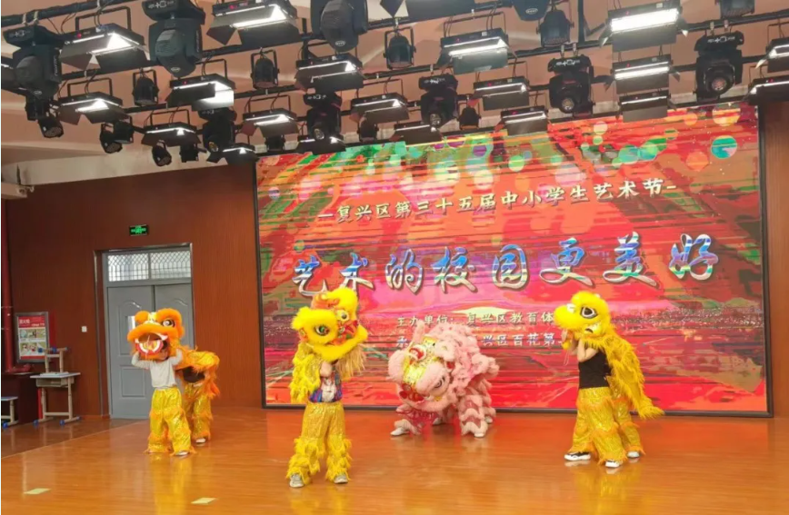 学校舞狮队先后在复兴区艺术节、园博园“户外在河北-成语之都行邯郸户外美 ”——“跟着赛事游复兴”活动中精彩亮相,一开场便点燃了现场气氛。一、二年级小学生们身着色彩明艳、绚丽夺目的舞狮戏服,迈着灵动轻快的步伐,翻腾跳跃,摇头摆尾,动作矫健而有力,将狮子的形象诠释得惟妙惟肖。舞狮文化在一次次的舞动、跳跃和腾飞中,焕发出新时代的崭新风貌。