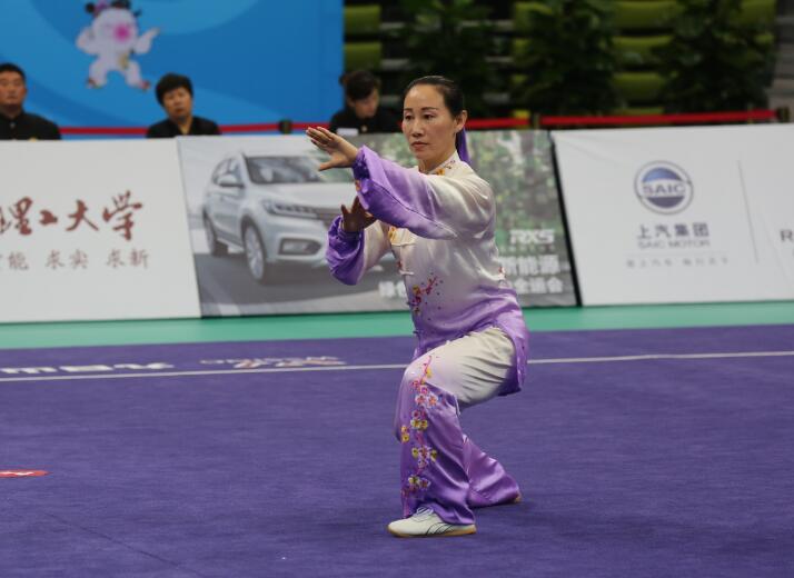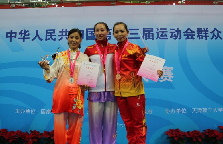 河北选手王艳萍在女子组规定武式太极拳46式比赛中斩获金牌