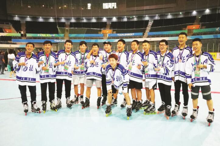 赛后,河北队教练于伟华也激动的直言,对比赛结果已经非常满意。“这是轮滑冰球第一次作为正式比赛项目进入全运会,不论是我们的男队还是女队,他们组队训练都不过两三个月的时间。我们原本的目标是保八争六,但是队员们都很争气,赛前状态积极,比赛中战术执行得当,所以最终结果为我们带来了惊喜。”据于伟华介绍,此次征战全运会轮滑冰球比赛的各只队伍年龄差距较大,而河北队正是其中最年轻的一支,平均年龄只有19岁。初来乍到的河北队起初并未受到人们的关注,但随着比赛的进行,在队伍敢打敢拼的良好战斗作风之下,小伙子们赢得了各地“老大哥”们的一致赞誉。“通过此次全运会的锻炼,队伍的成长非常迅速,队员们所展现出的精神状态、技战术水平让人们看到了河北代表队不容小觑的未来发展前景。”