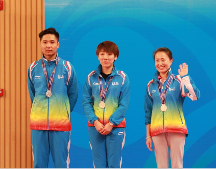![]() 杨皓然、杜贝与教练赵颖慧(右) |