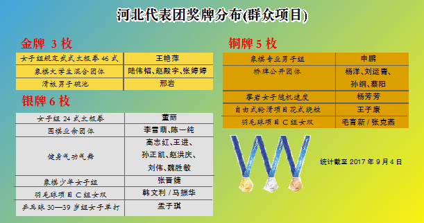 截止到9月8日第十三届全运会河北代表团奖牌分布表