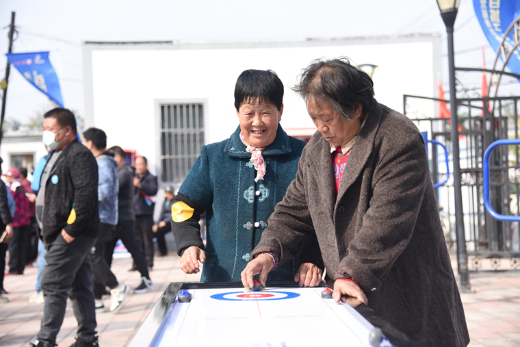 为使现场村民们了解冰雪运动知识和快速掌握器材使用方法,每项活动安排了2名社会体育指导员进行专业性的指导。现场村民们热情高涨,积极参与了陆地冰壶、桌上冰壶、桌上冰球、VR冰雪模拟器等各种体验项目。一位正在体验桌上冰壶的村民表示,活动非常好,很简单的设备就能体验到冰雪运动的乐趣。