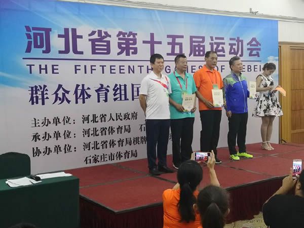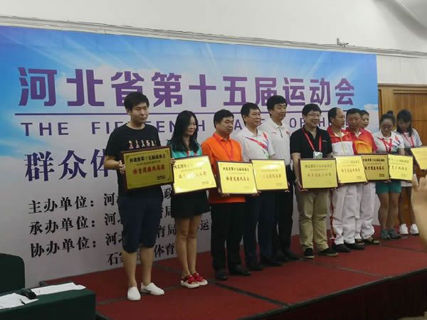 石家庄市体育局体育总会主任王新(左四)为获奖选手颁奖。