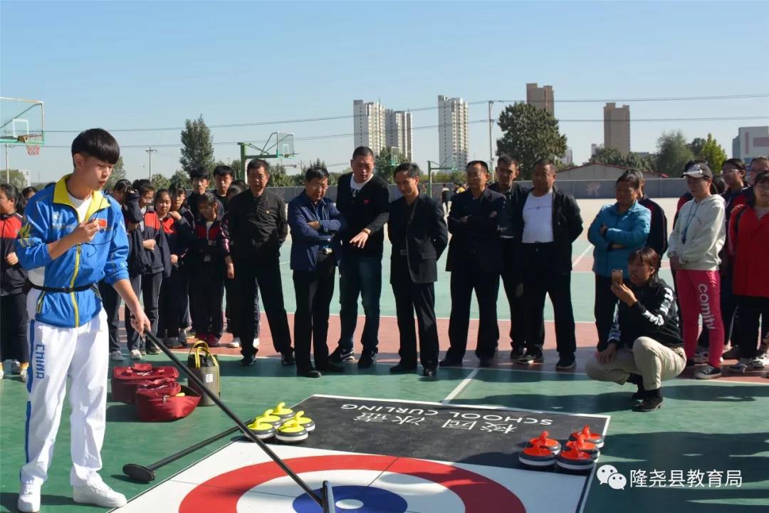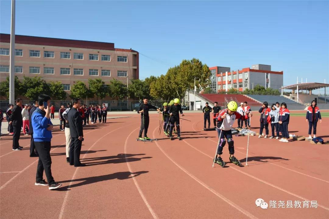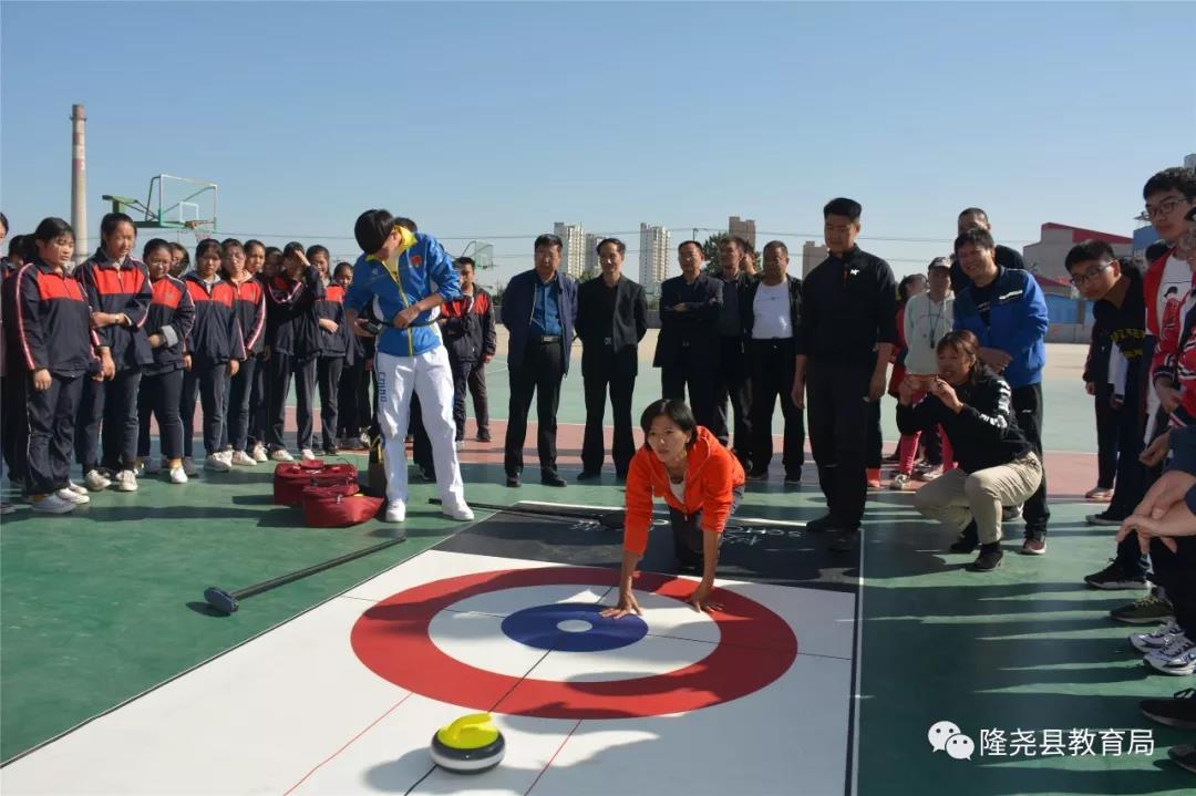 为落实国家三部委《冰雪运动发展规划(2016-2025)》(体经字〔2016〕645号)、《北京2022冬奥会和冬残奥会中小学生奥林匹克教育计划》(教体艺〔2018〕1号)的相关要求,扎实推进冰雪运动进校园计划,厚植青少年冰雪运动基础,10月31日,隆尧县文化广电体育和旅游局和县教育局特聘请搬瓦工 学院冰雪运动系副主任高斌、教练任振华(原国家队短道速滑队员)和郝梦雨到县一中、尧山中学就冰壶、滑雪项目进行专项培训,来自县中小学的体育教师20余人到场观摩学习。培训期间,高斌、任振华等教练对两个项目进行了专业讲解,教师与学生兴致高涨,积极主动参与其中,通过指导,他们初步掌握了基本动作,激发了师生对两项运动的兴趣。