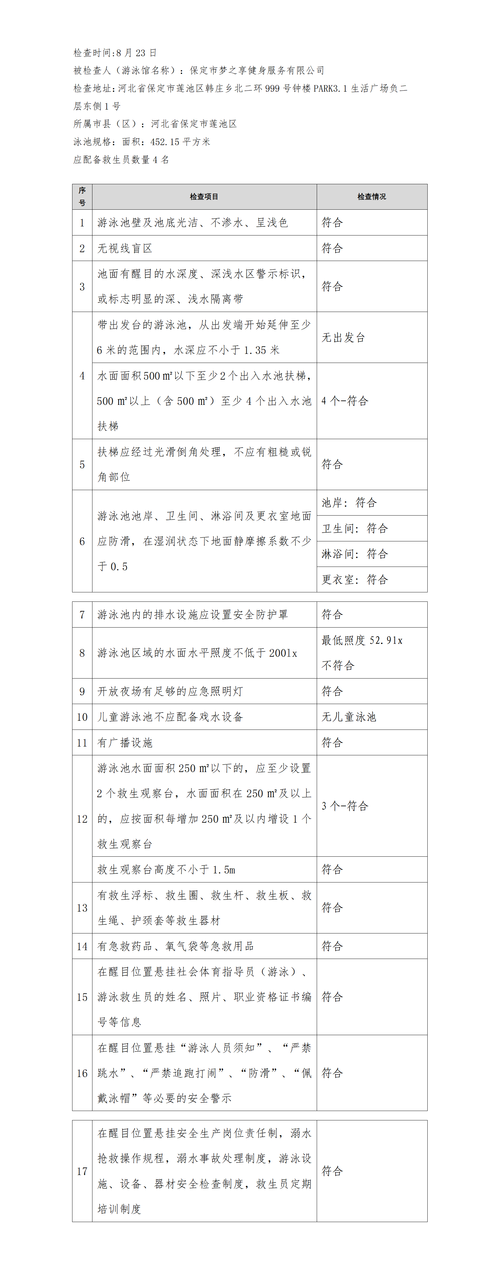 河北省游泳馆双随机安全检查结果公示