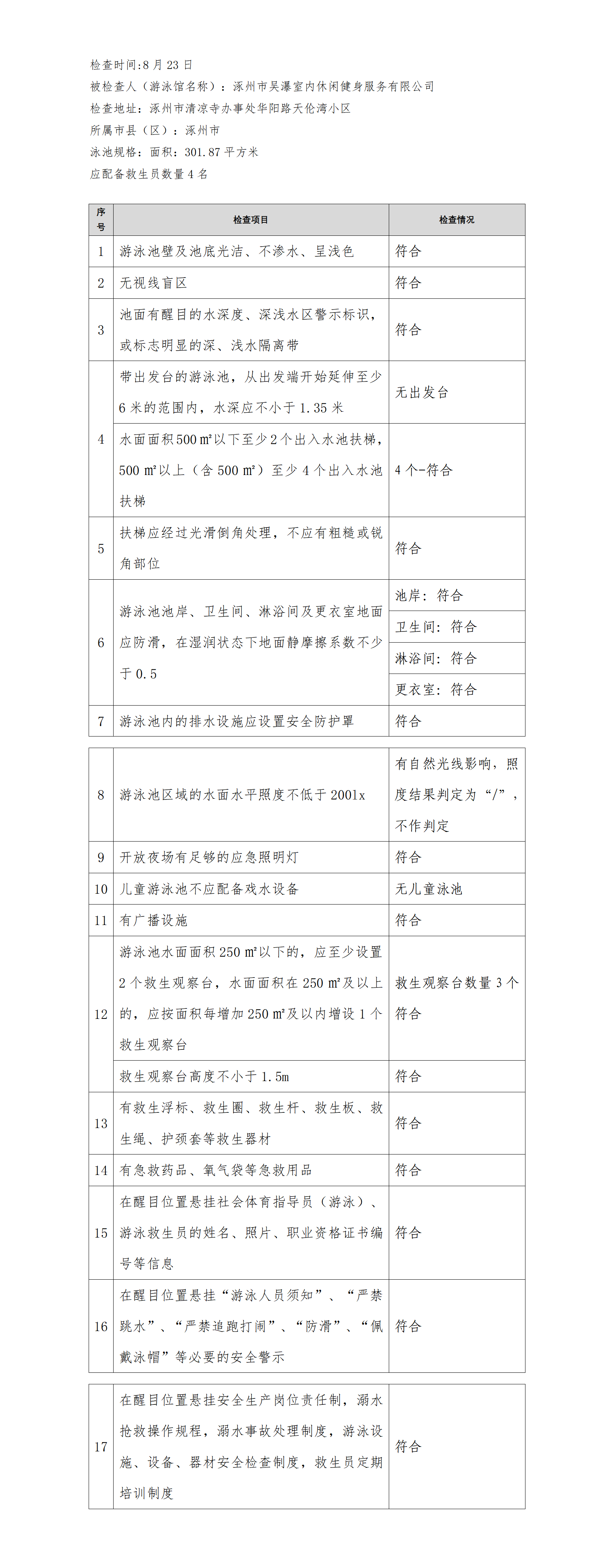 河北省游泳馆双随机安全检查结果公示