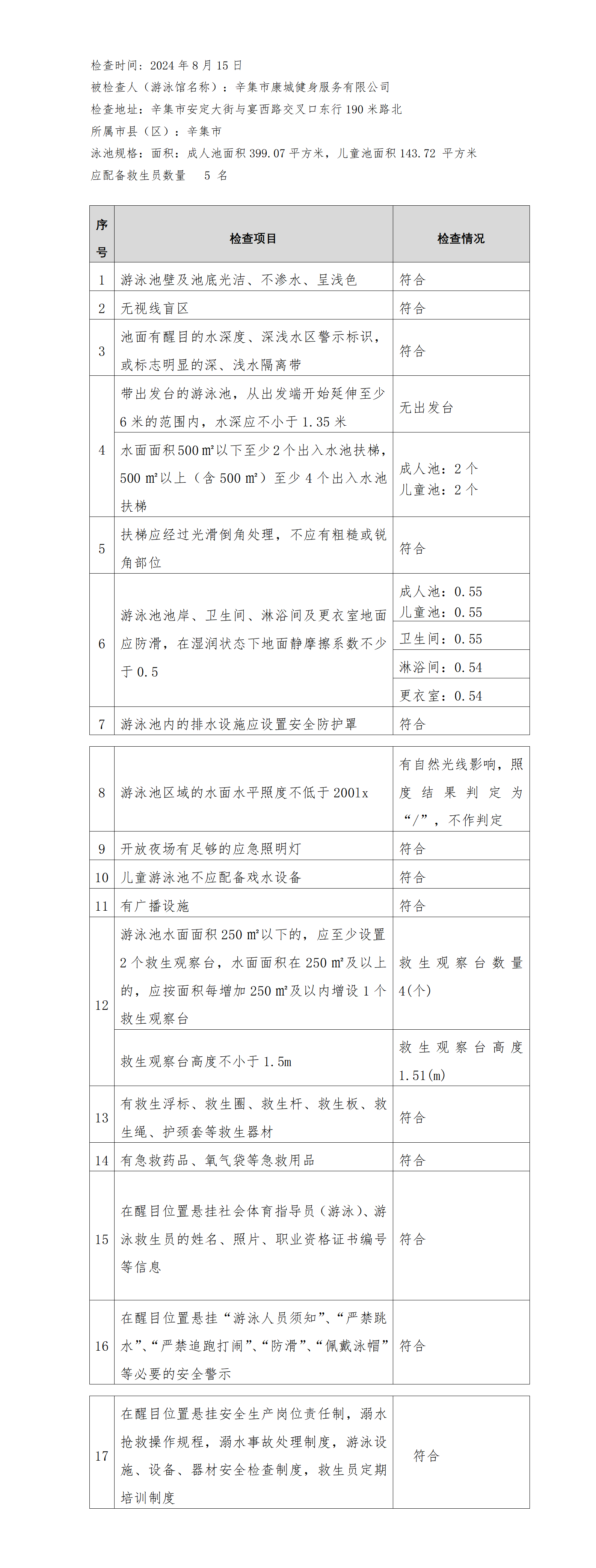 河北省游泳馆双随机安全检查结果公示