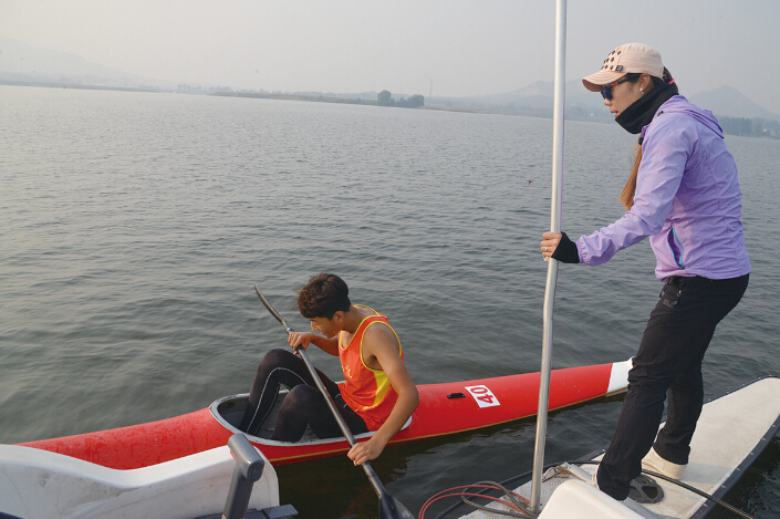 今年,水上中心和青训中心合作,携手配合苗子集训工作的开展,无论是队员的数量还是在重视程度上都是前所未有,这种喜人的变化,放在几年前,就连教练们也想都不敢想。“前些年向孩子们介绍这些水上项目非常困难,听说的人很少,比赛的转播也很少,国内整体的关注度比较低,也就是这两届奥运会中国在水上项目中拿了奖牌以后,大家才开始慢慢了解。”和刘思维有着同样感受的还有此次借调来帮助集训的邢台市皮艇教练高晓鹏。以前每次去学校招生,高晓鹏都要随身带上笔记本电脑,首先向老师和学生们介绍什么是水上项目,皮艇、划艇都是什么样子,基本上一个学校就要耗费一天的时间,通过大量耐心的讲解工作,去消除学生们的顾虑。然后再开设兴趣班,从教游泳、练田径、打篮球等最基础的训练开始,再一步步带孩子们接触水上项目,工作繁琐而漫长。“那时候招生确实费劲,慢慢磨练的咱们水上项目的教练现在各个都成了全能教练。”说完,高晓鹏哈哈一笑。